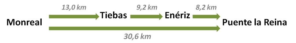 La más extensa, de casi 31 km, es la que lleva desde Monreal a Puente la Reina, pasando por varias localidades, entre ellas Enériz, donde está nuestro albergue.